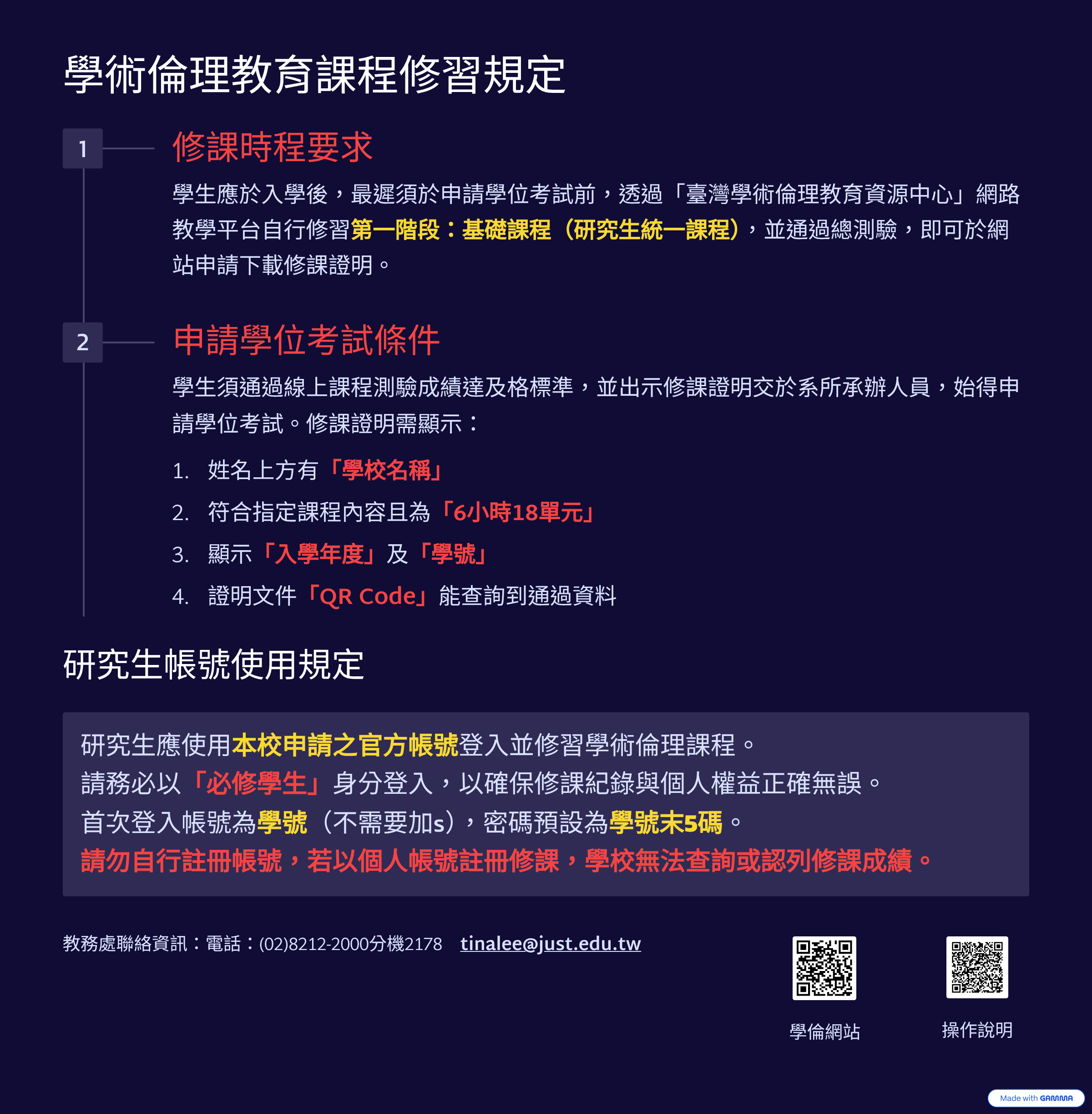 (重要~請研究生留意)學術倫理教育課程修習規定