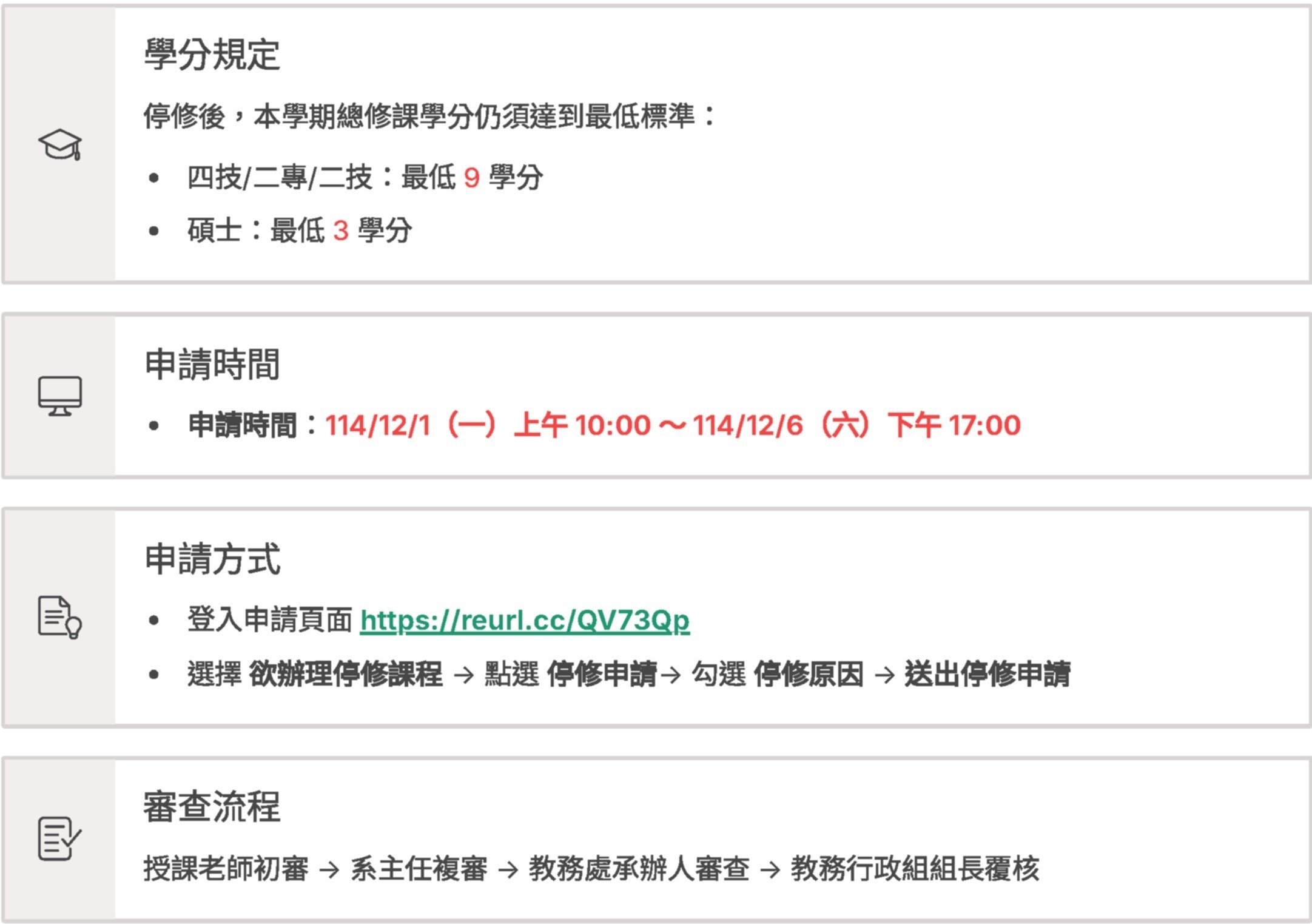 停修結果尚未公告前,學生仍應依課表正常上課。